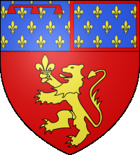 lambel à trois pendants de gueules, au 2e d'azur semé de fleurs de lis