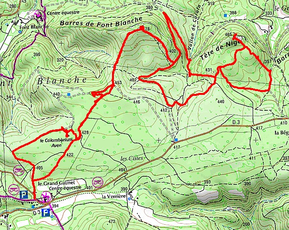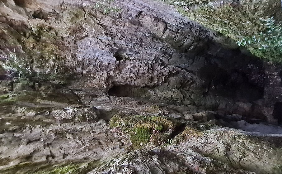 Un peu du gouffre (désormais fermé) du Grand Caunet dit du columbarium ; orifice du 8 m sur 5, profond de 20 m, avec escalier colimaçon, petites niches,. ..