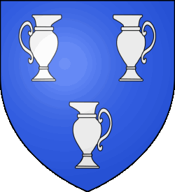 Blasonnement : D'azur aux trois aiguières d'argent, celle en chef à dextre contournée.